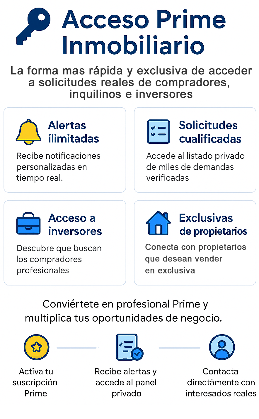 Si eres inmobiliario, mejor da el salto a Prime y accede a todas las solicitudes, inversiones y propietarios que